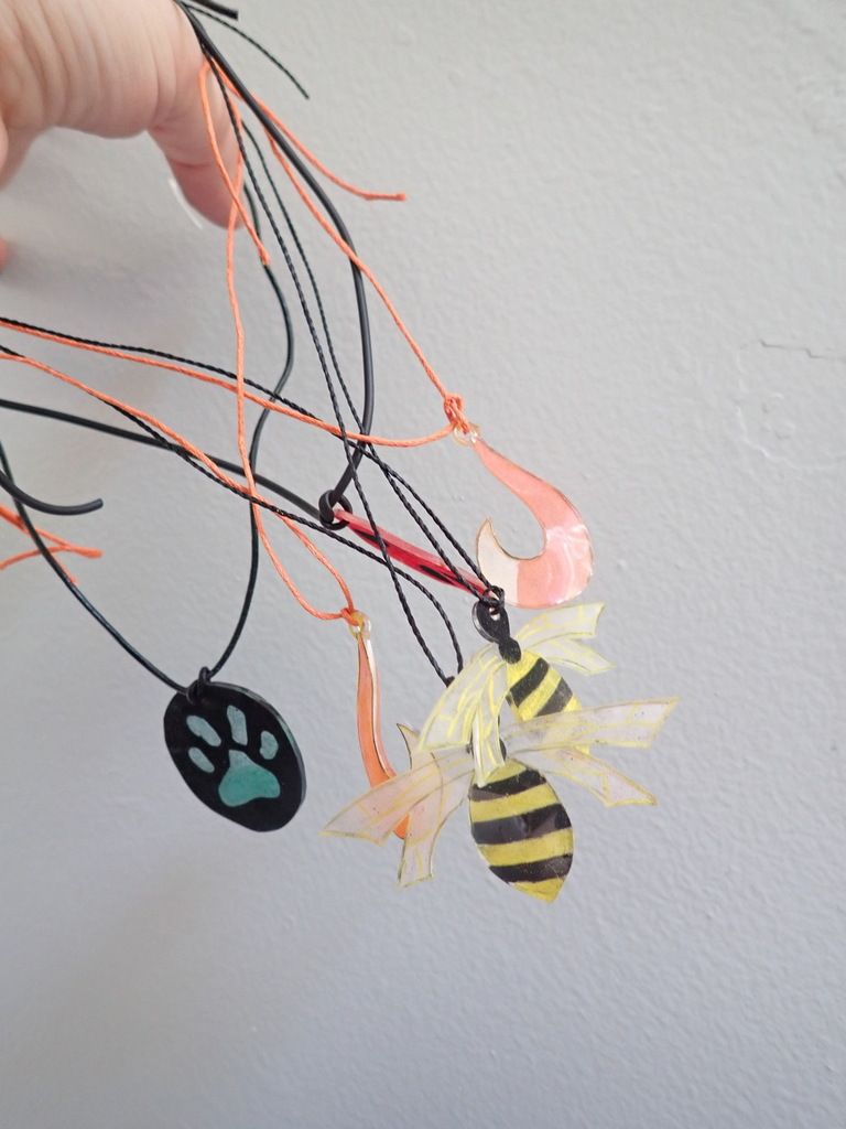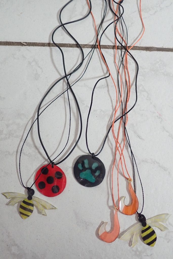 Pour les miraculous, j'ai fait un collier pour tout le monde, le médaillon est en plastic fou.